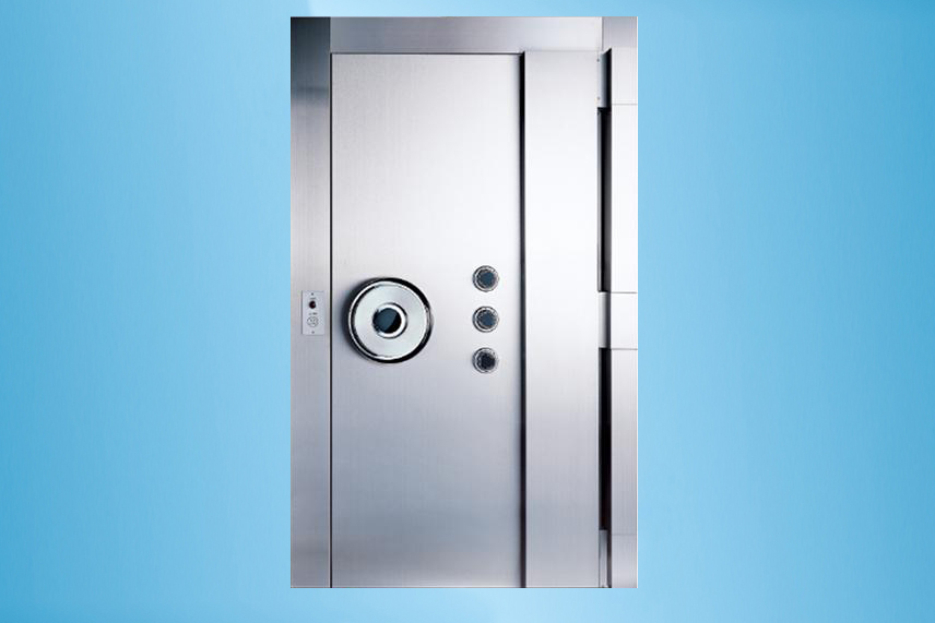 金庫門選用 超厚防爆鋼板,特種防鉆合金板和標準槽鋼、進口不銹鋼板、進口密碼鎖(可按用戶需要選配高、中、低檔鎖具),及特種填充料等利用先進設備加工而成,足以能抵御、阻止目前先進而強硬的攻擊手段;并配置日閘門和備用小門,能確保庫內財產的安全。