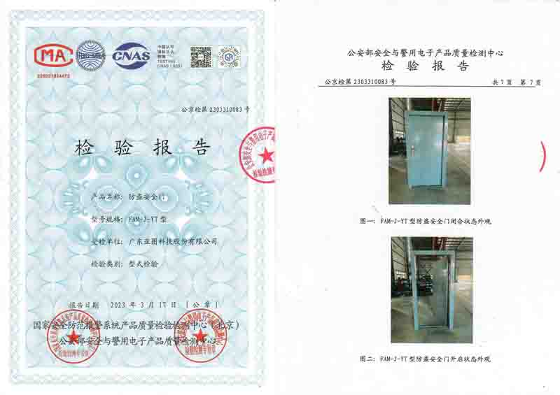甲級防盜門公安部檢測資質報告