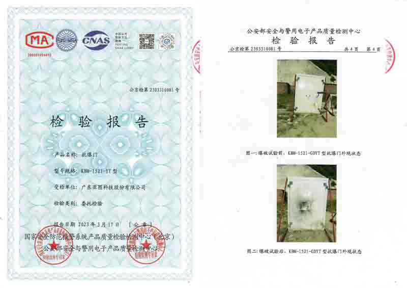 鋼質抗爆門公安部檢測資質報告